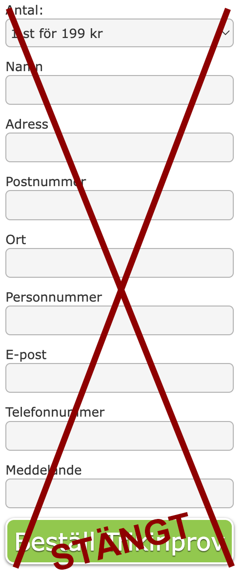 Det enklaste, snabbaste och säkraste sättet att beställa en trikinundersökning online. Beställ förbetalt trikinundersökning genom att fylla i formuläret. Vi skickar paketet till dig tillsammans med en faktura.